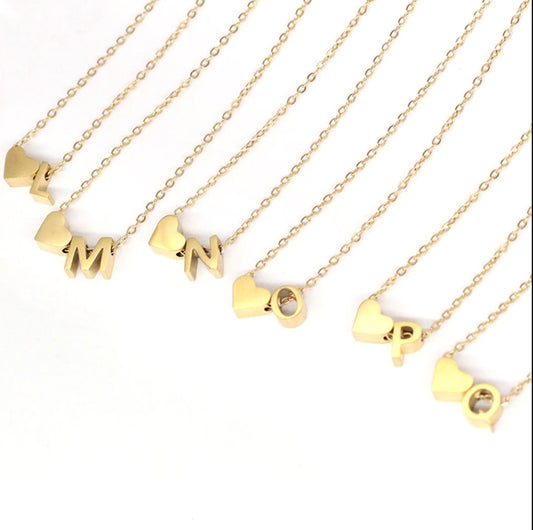 Custom Dainty Heart Initial Necklace for Her | Gold, Silver or Rose Gold